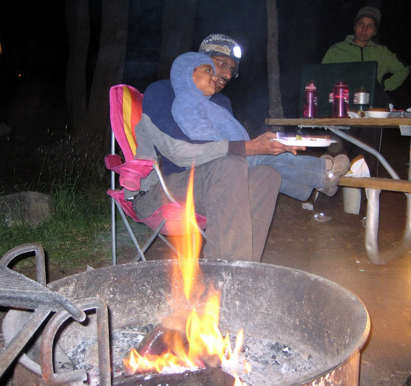 We reached the campsite around 5:30pm. Srikant, Sridevi and Sriram were not there but we found out they have the same REI tent. We managed to put up our tent pretty quickly and the Sri family came to the campsite. They had gone for their usual evening hike to Pot Hole Dome. Sridevi made us some nice tea and then Pradosh and Srikant went to get some firewood. After that, we spent some time making the fire and then made paneer maggi for dinner. We also got a surprise (shock?) hearing that the restrooms do not have lights and no hot water. After coming back from the restroom, we ran to our tent and slept. We woke up a few times at night and imagined that a bear was walking around. It was not that cold that night and we had a decent sleep.